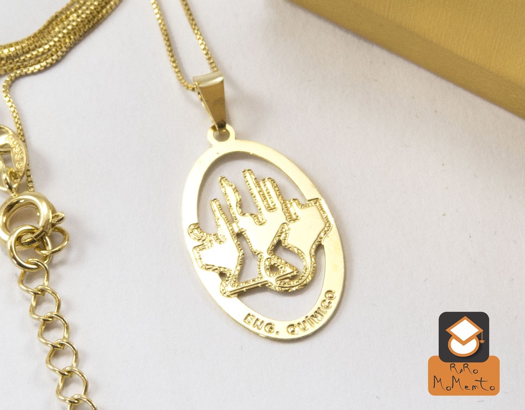 Colar com pingente escrito ENG. QUÍMICO folheado hipoalergênico em ouro 18kt.