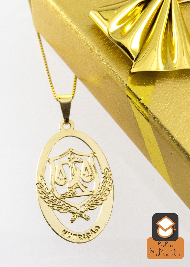 Colar com pingente escrito NUTRIÇÃO folheado hipoalergênico em ouro 18kt.