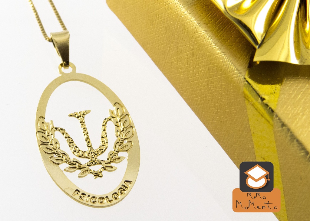 Colar com pingente escrito PSICOLOGIA folheado hipoalergênico em ouro 18kt.