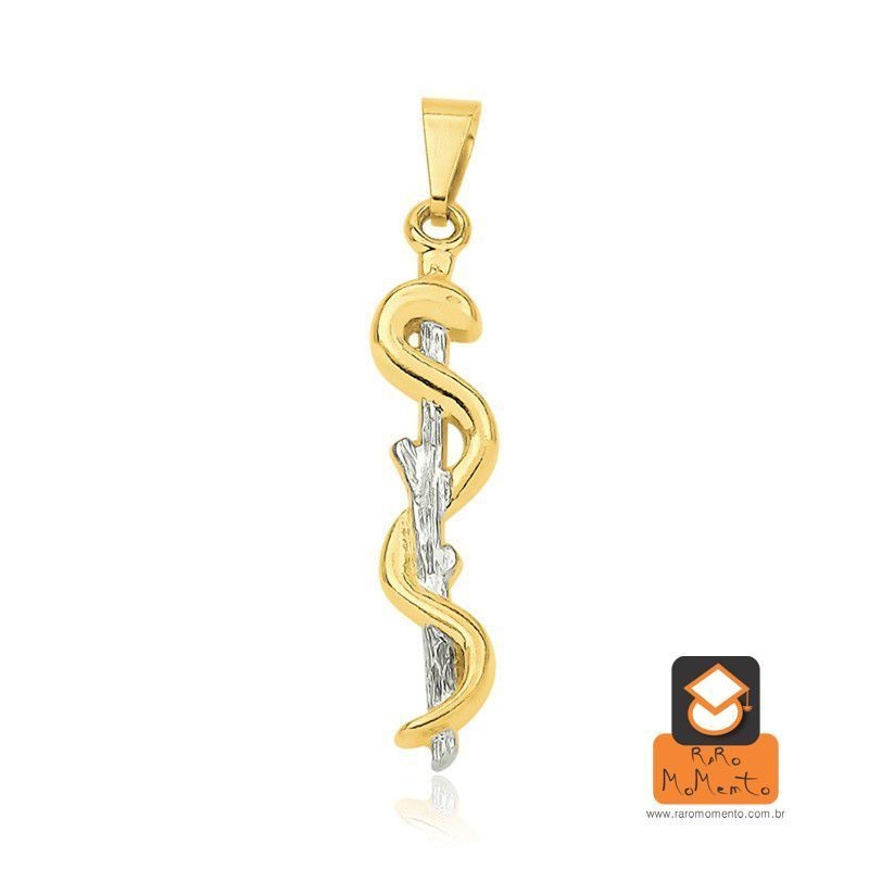 Colar com pingente com o símbolo da MEDICINA folheado hipoalergênico em ouro 18kt e detalhes em prata